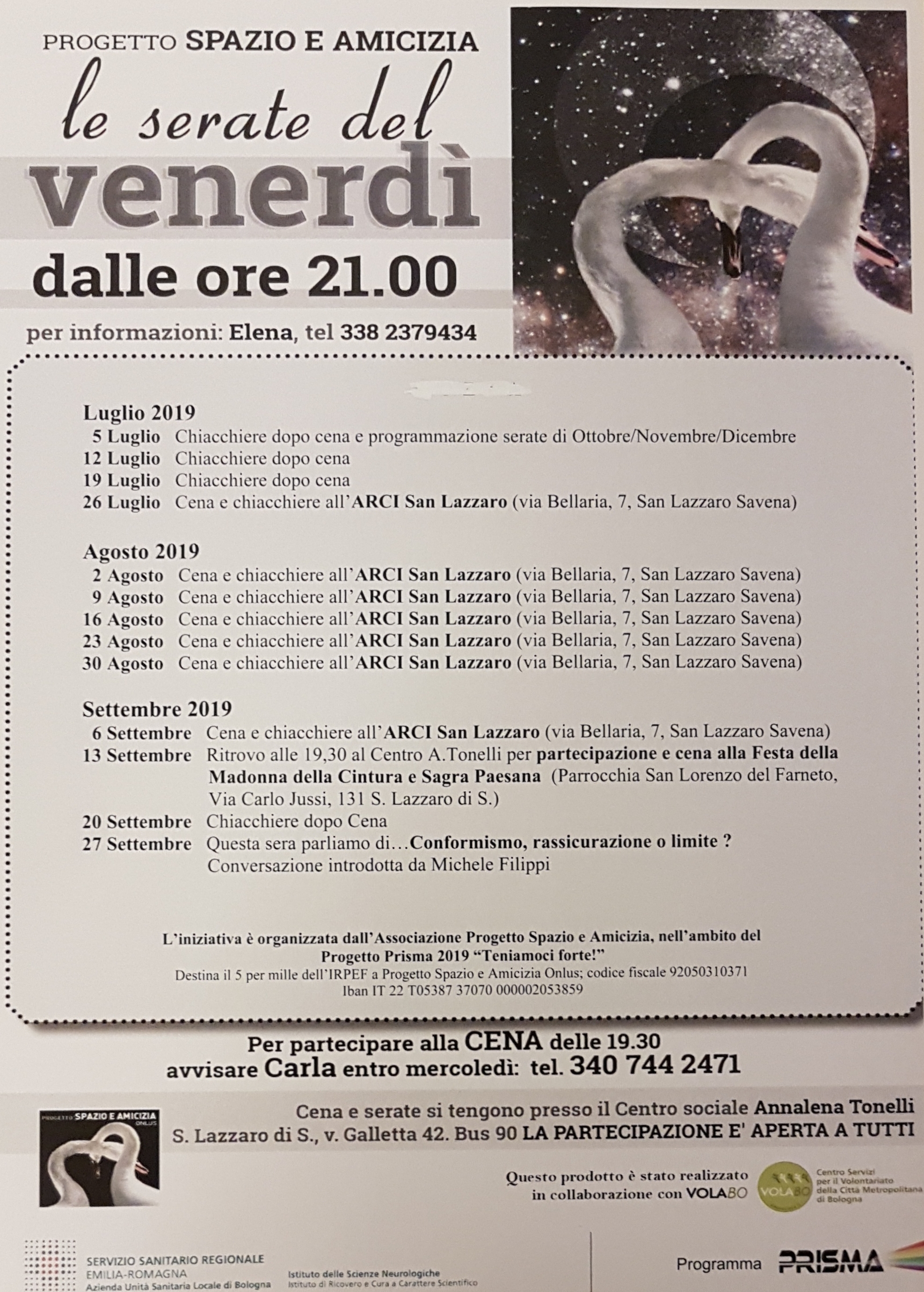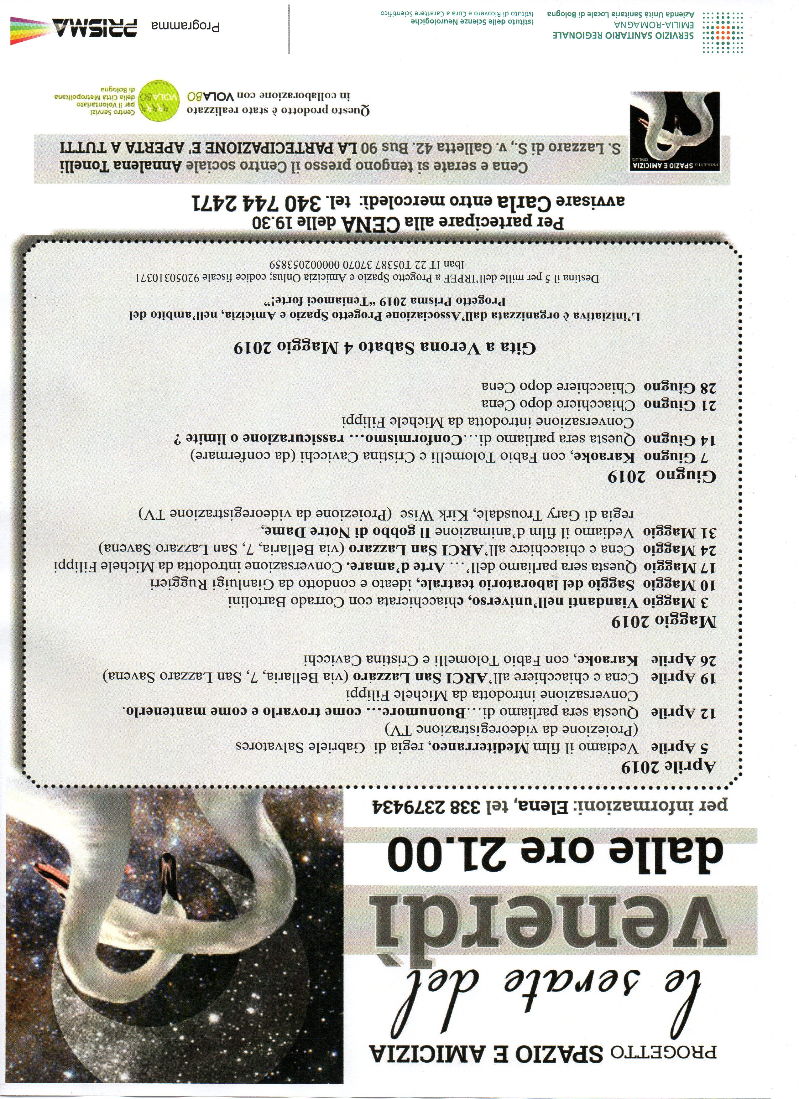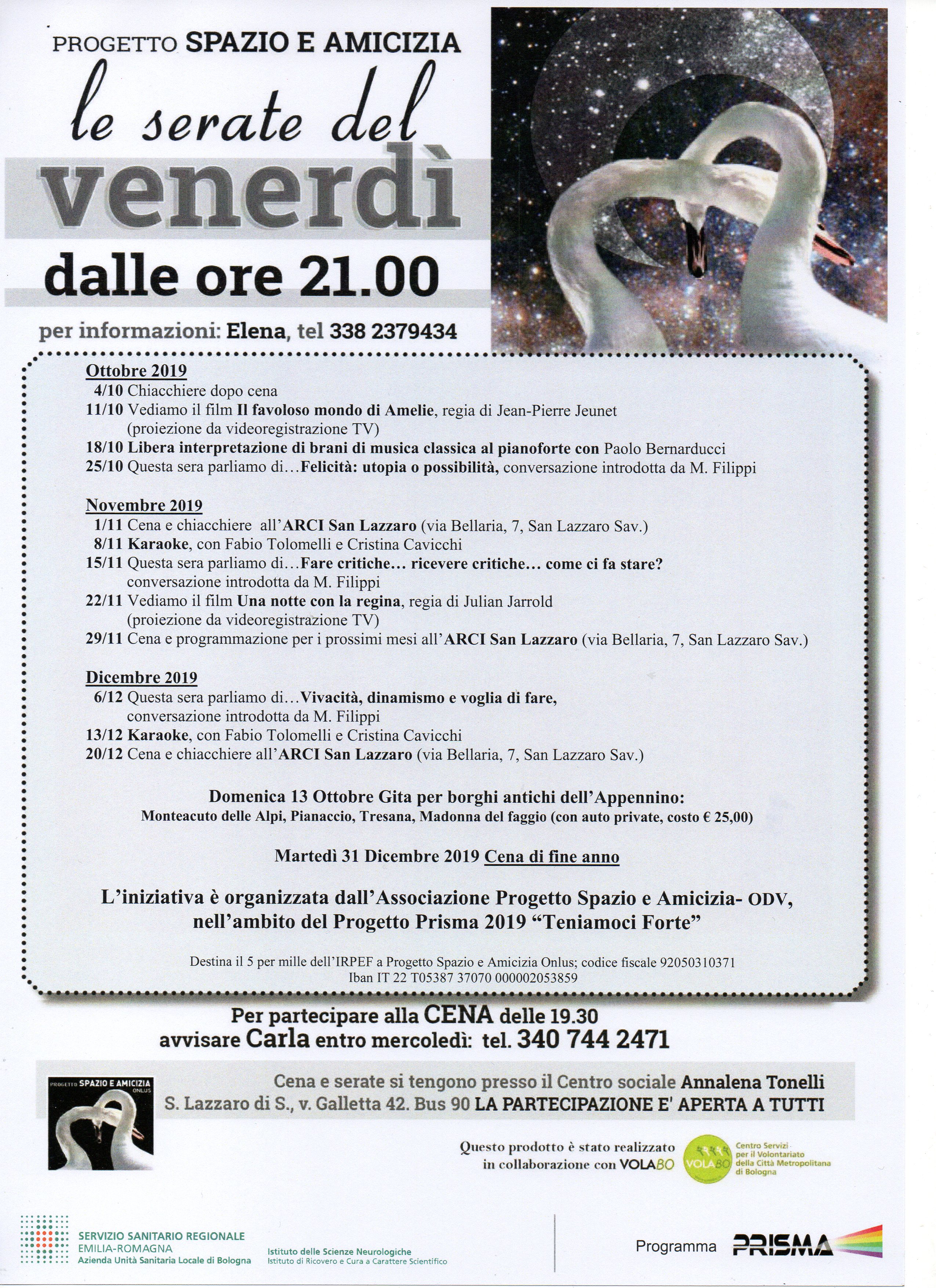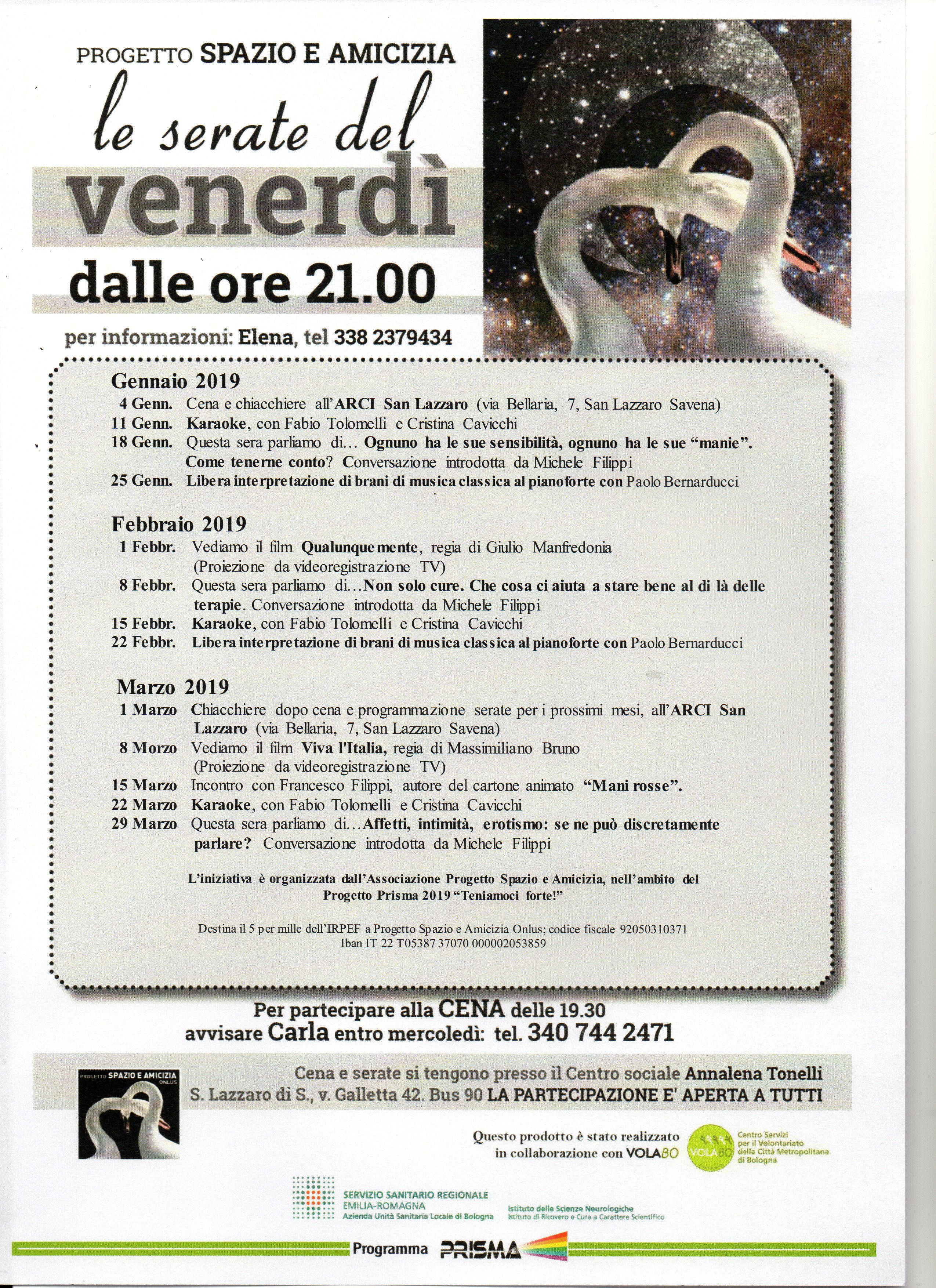 Le serate del venerdì - Serate Genn_Marz 2019, Serate aprile giugno 2019 . Luglio - settembre 2019: Volantino , Ottobre Dicembre 2019: Serate Ott Dic 2019