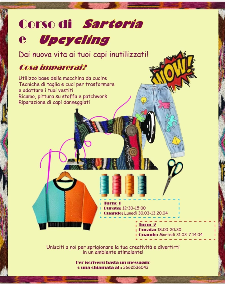 In questo laboratorio si lavorerà sull’upcycling dando nuova vita ai capi che non si usano più per creare dei fantastici pezzi unici, ripensandoli e personalizzandoli a tuo piacimento.