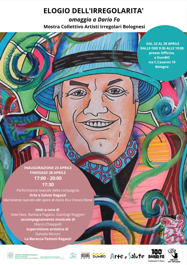 Ad accompagnare l’esposizione, una performance della compagnia teatrale Arte e Salute Ragazzi: letture di testi di Dario Fo, selezionati e rielaborati da Gianluigi Ruggieri, insieme a testi originali di Kate Nasi e Barbara Pagano, con musiche tratte dal repertorio di Dario Fo a cura di Marco Chiappelli e la supervisione alla regia di Daniela Micioni - La Baracca-Testoni Ragazzi.